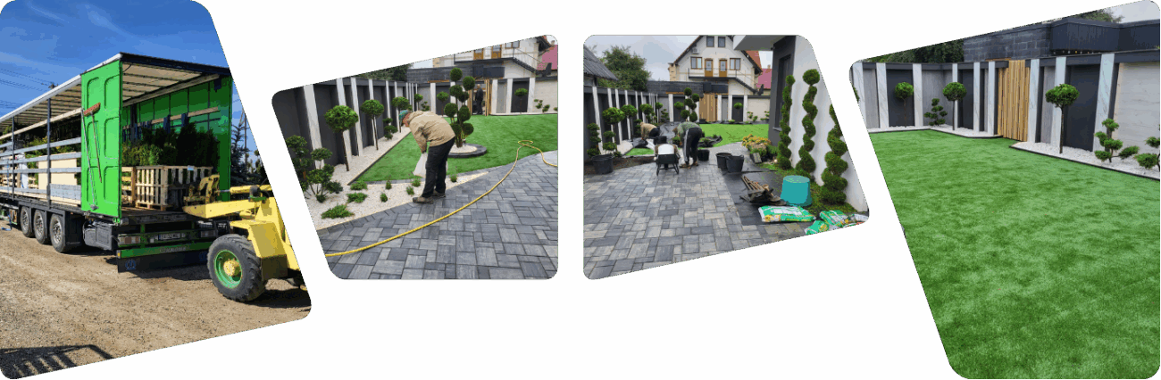 Lucrăm cu echipă proprie, folosim plante crescute în pepiniera noastră și oferim servicii complete pentru grădini, curți, terase și evenimente.