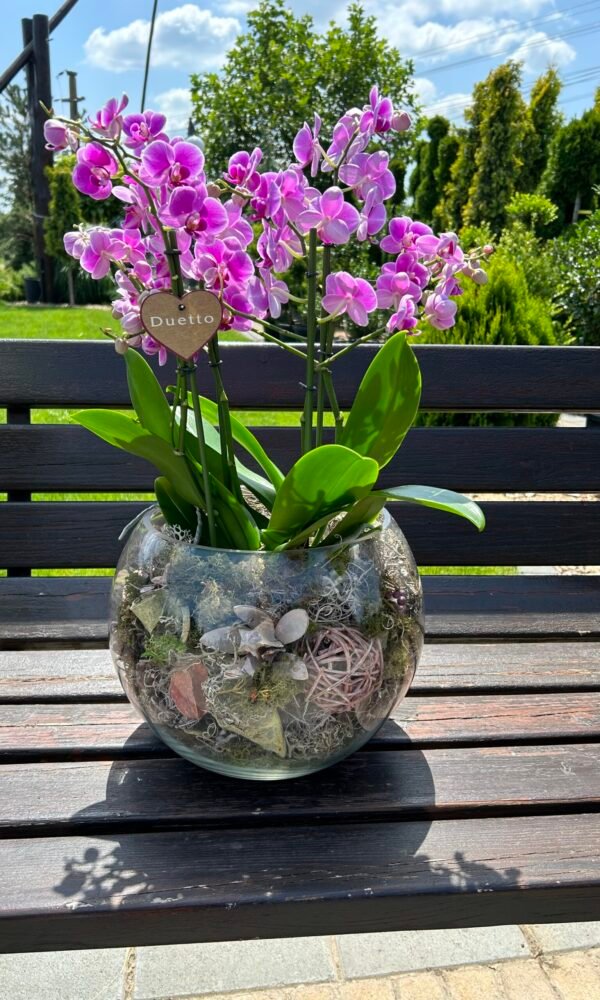 ARANJAMENT CU ORHIDEE IN VAS STICLA