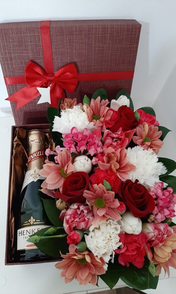 Cutie Flori naturale cu sampanie