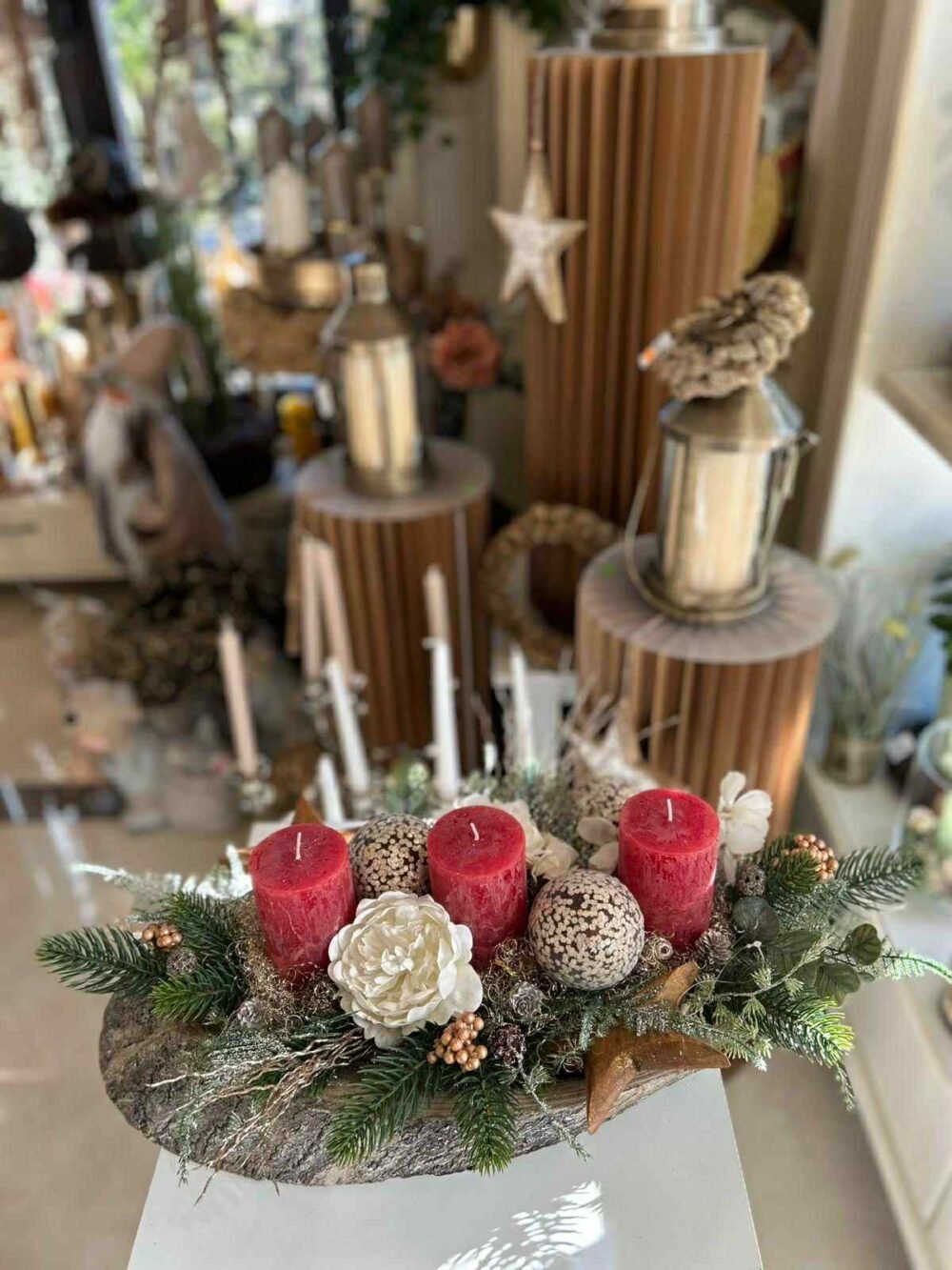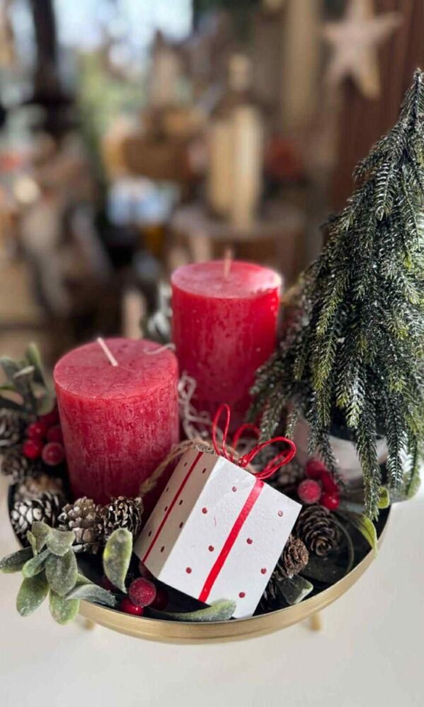 ARANJAMENT DE CRACIUN CU LUMANARI ROSII