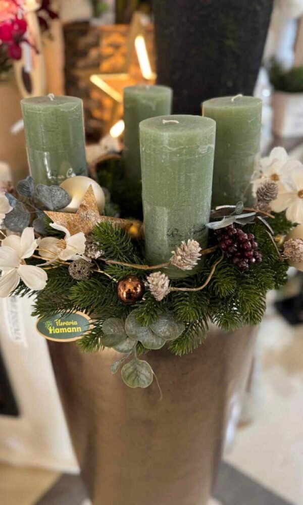 ARANJAMENT DE CRACIUN CU LUMANARI VERZI