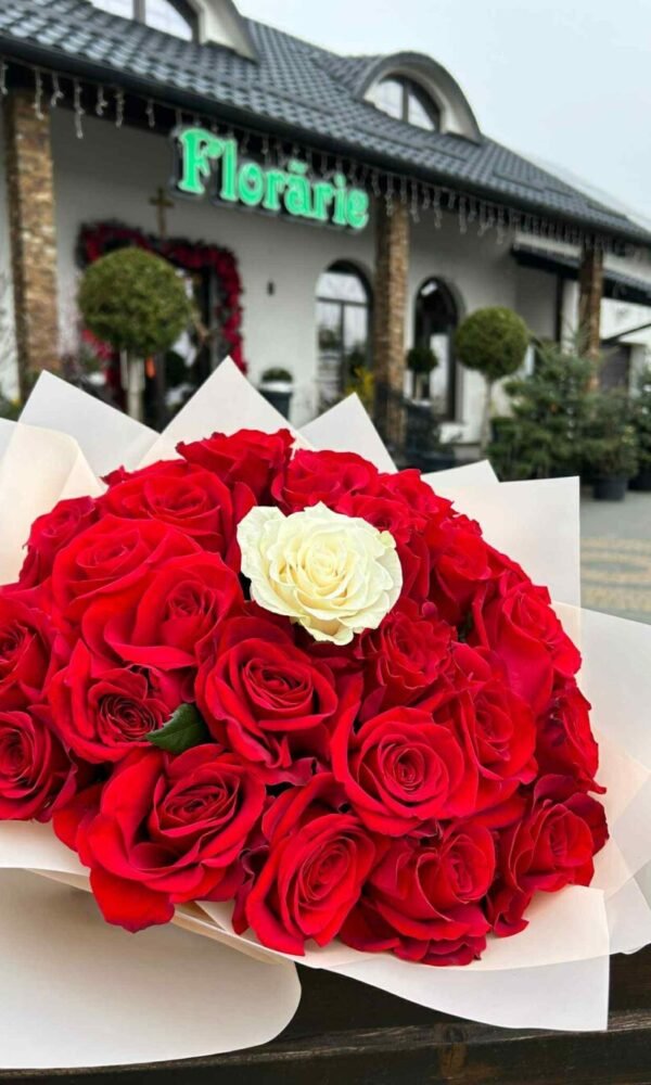 BUCHET TRANDAFIRI ROSII SI UNLU ALB
