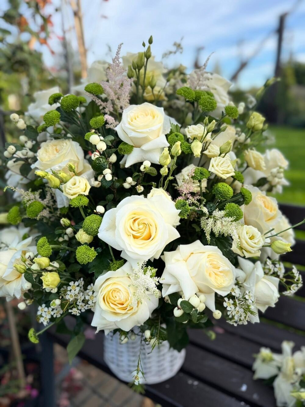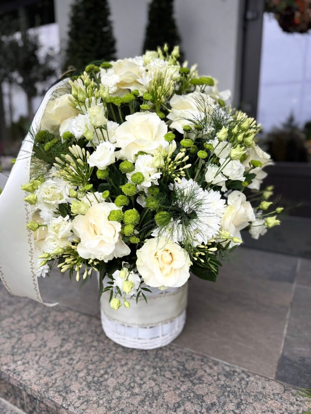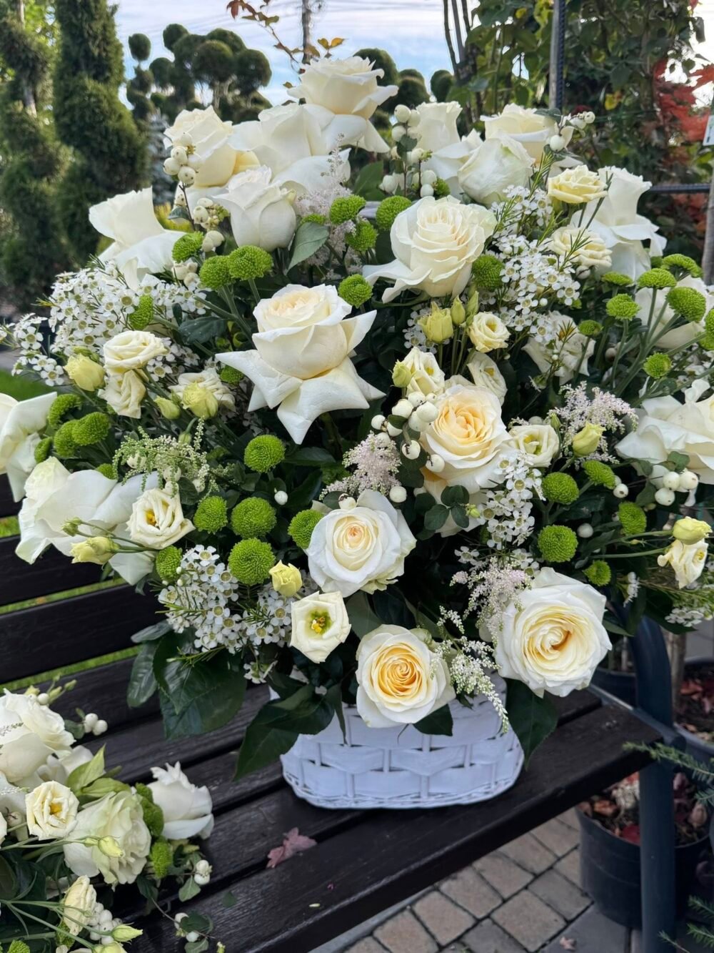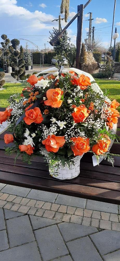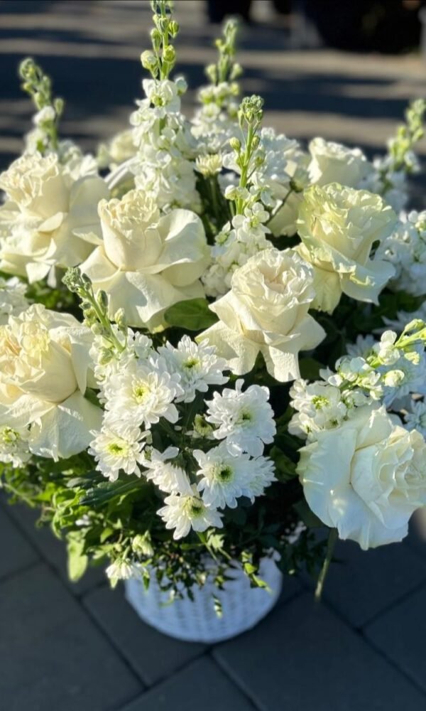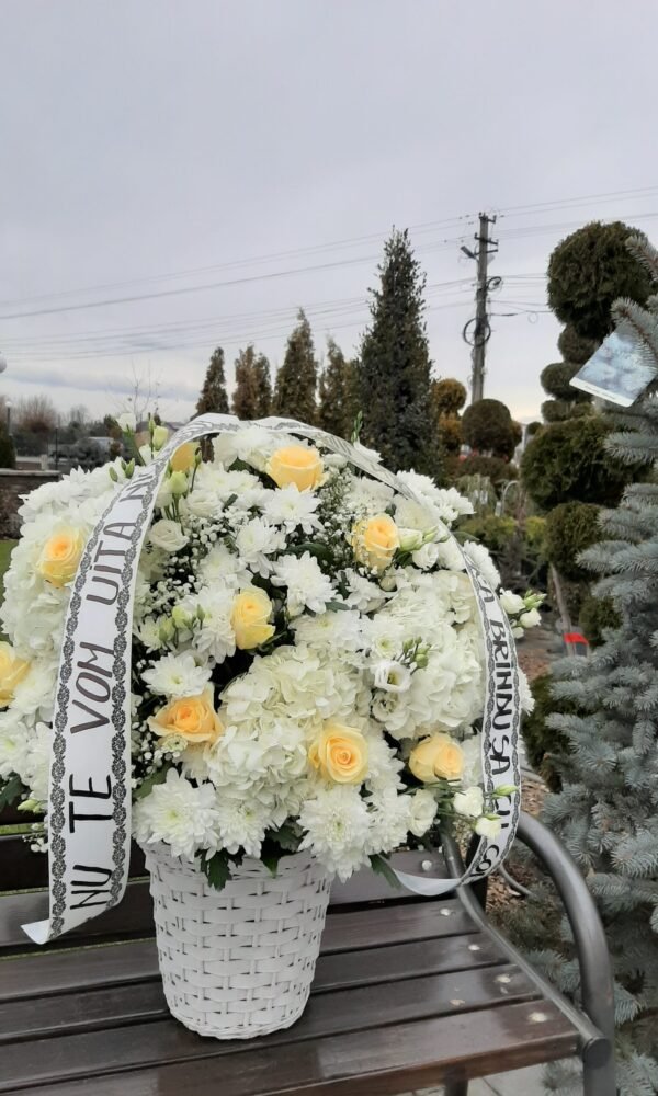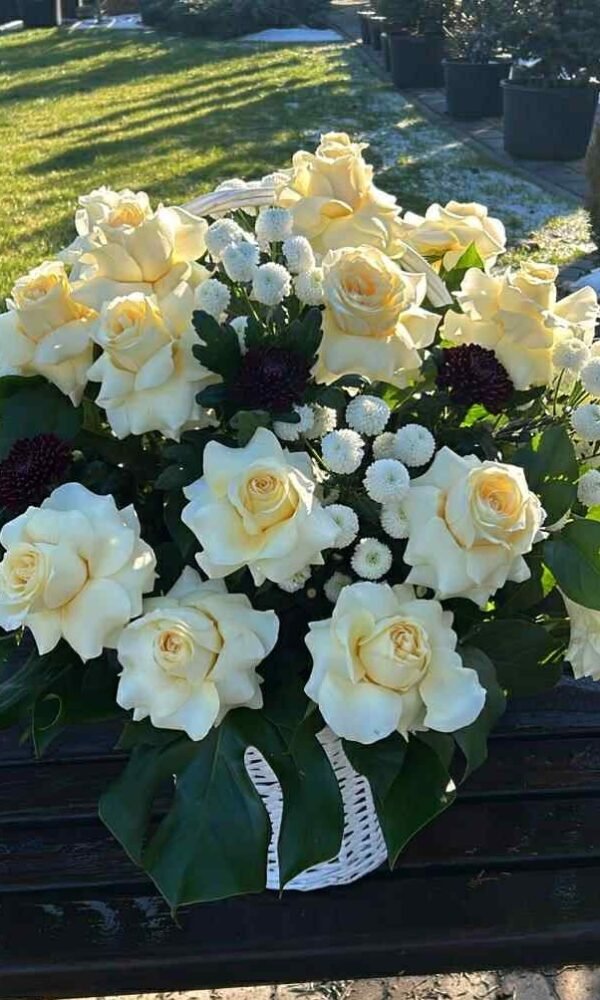 Cos funerar cu trandafiri albi si crizantema