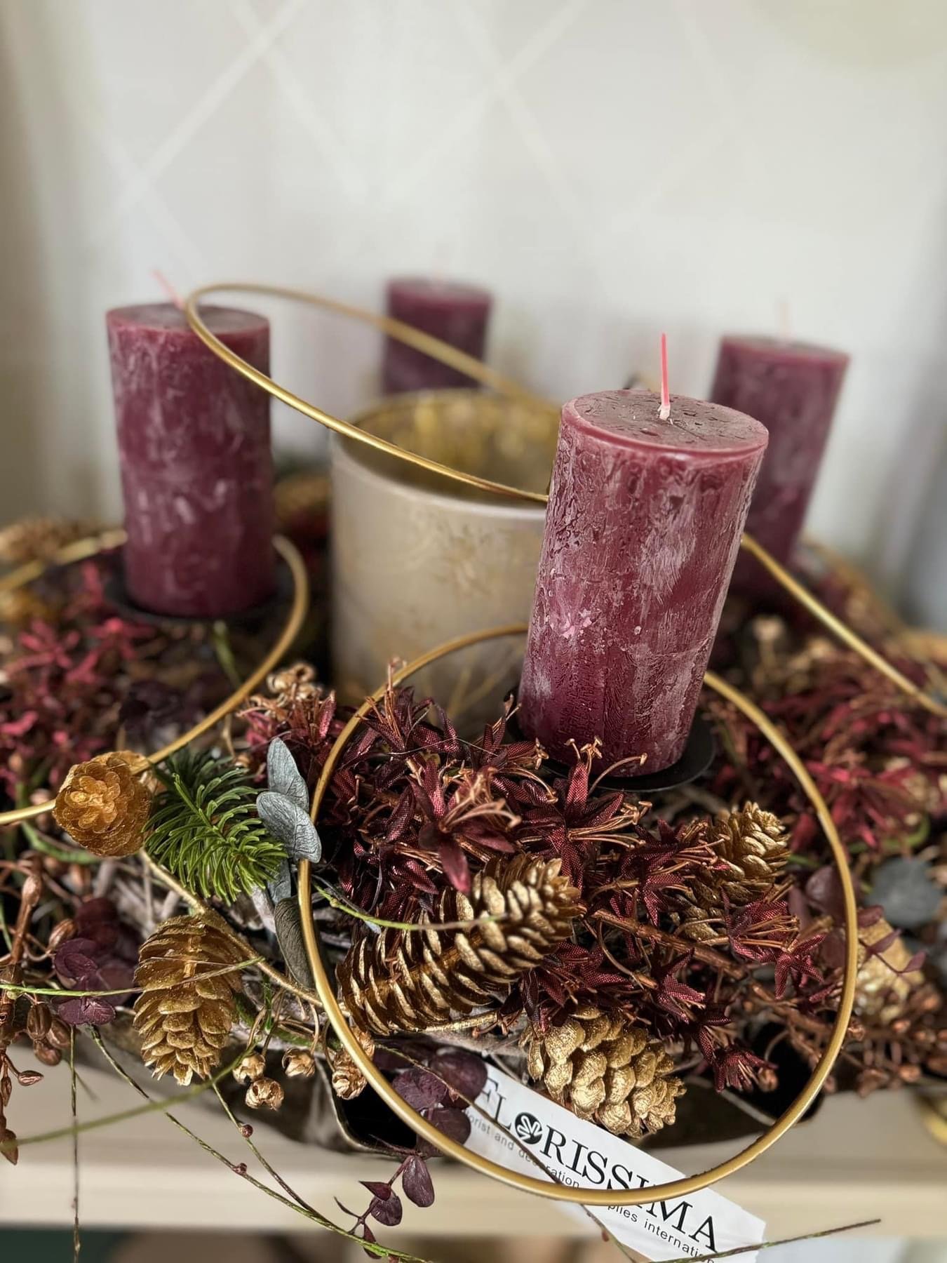 ARANJAMENT LUMANARI RUSTIC BORDO