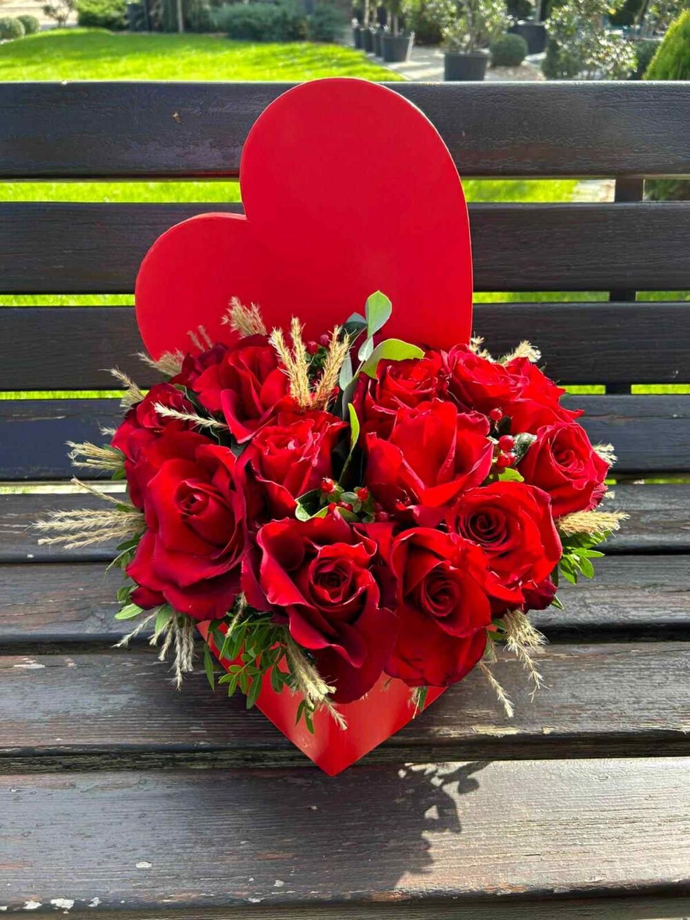 TRANDAFIRI ROSII IN CUTIE INIMA
